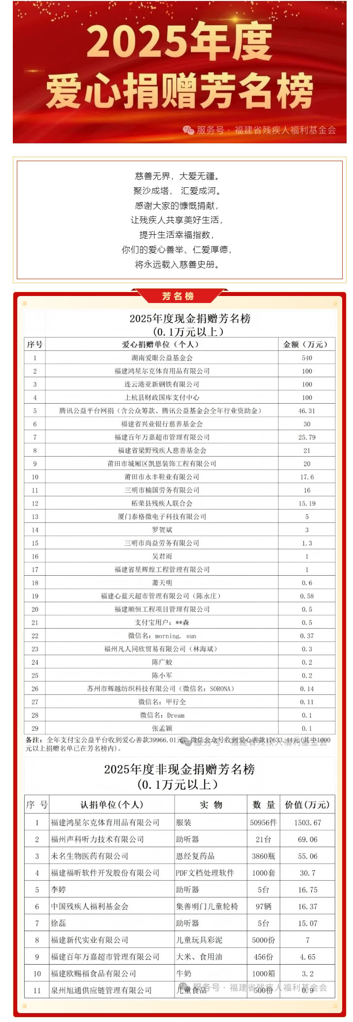 2025年度爱心捐赠芳名榜